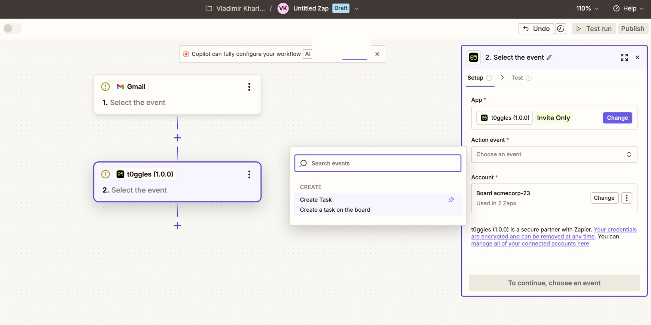 For detailed, step-by-step instructions (with screenshots and field references), check the official docs: Zapier integration guide: https://t0ggles.com/docs/board-settings/integrations/zapier