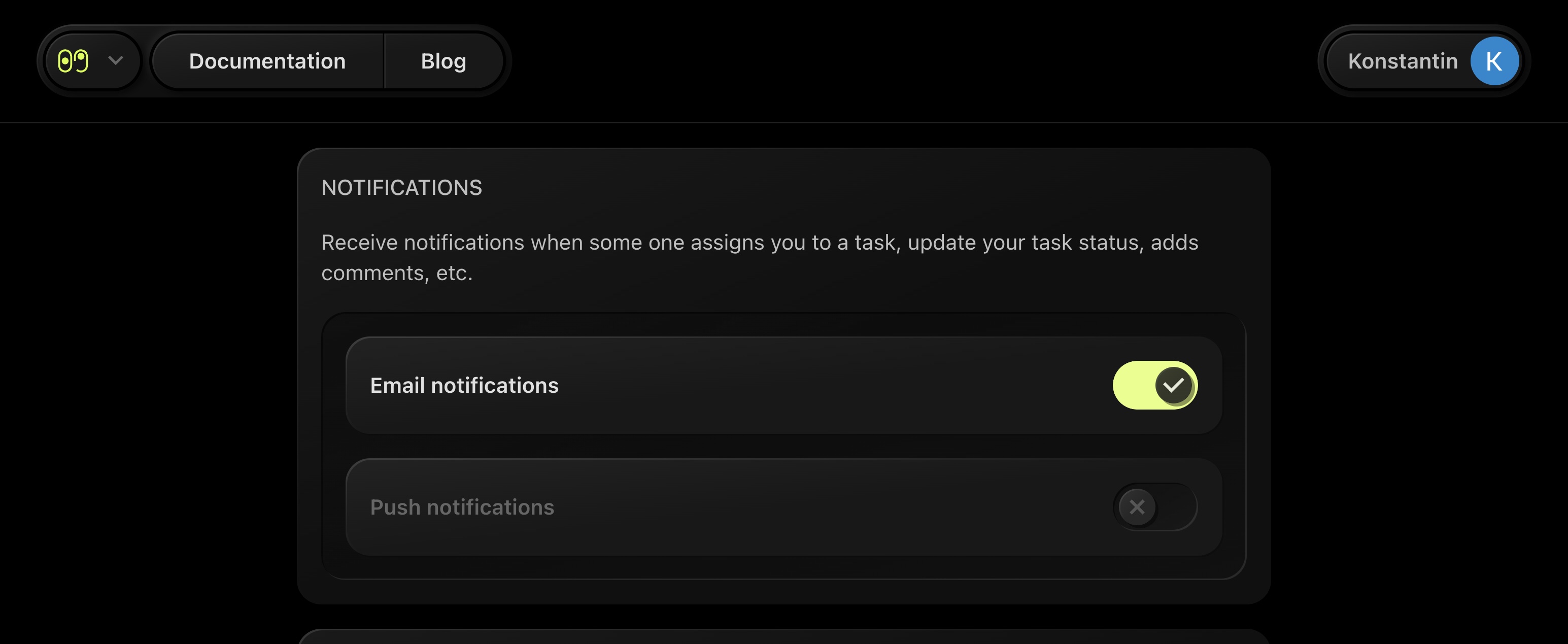 By Email: Opt in to receive notifications via email whenever someone assigns you a task, mentions you in a comment, or updates a task you are following.