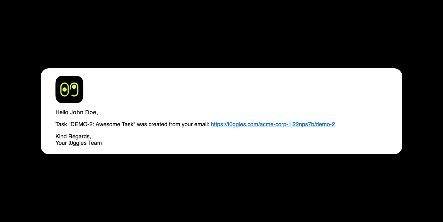 After a task is created, t0ggles sends a confirmation email back to the sender with a link to the task.