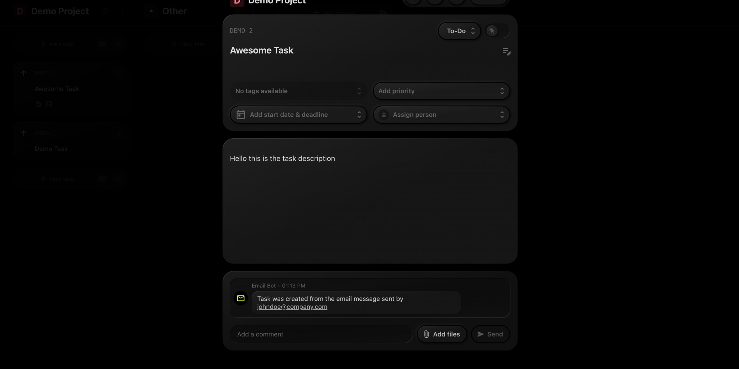 This is a great way to update tasks directly from your email client, even on the go.