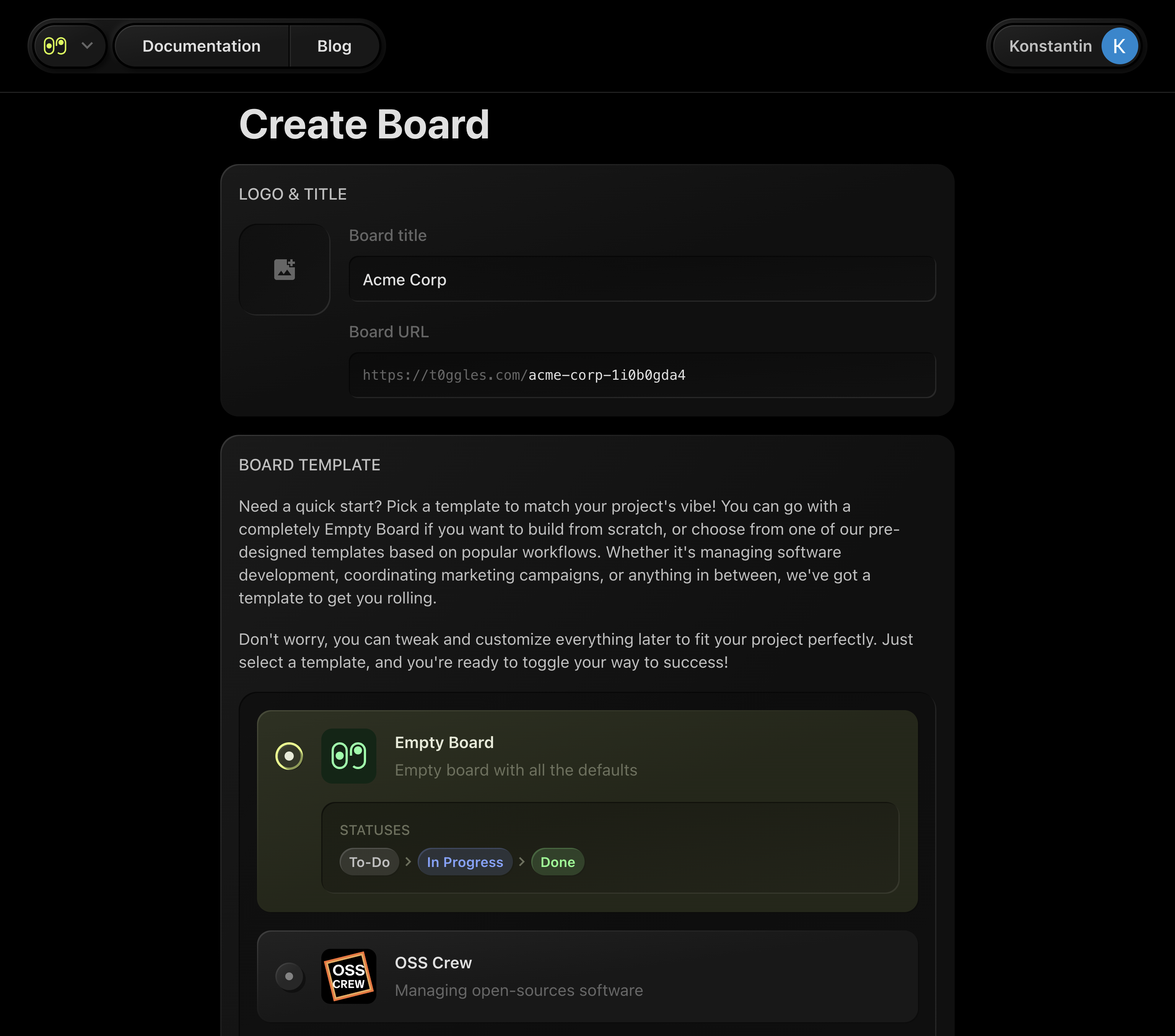 Excited to start organizing your projects with t0ggles? Let's set up your new board! Just follow these simple steps:
