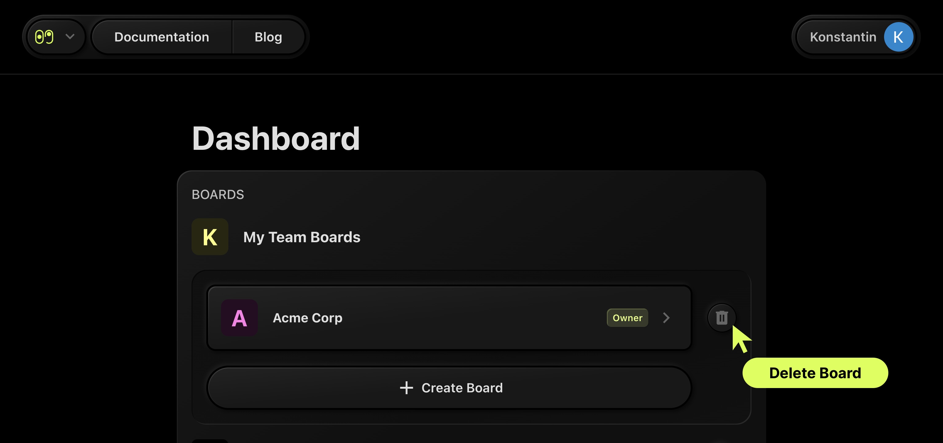 • Find Your Board: Navigate to your "Boards" section and click the "Delete" button next to the board you want to remove.
