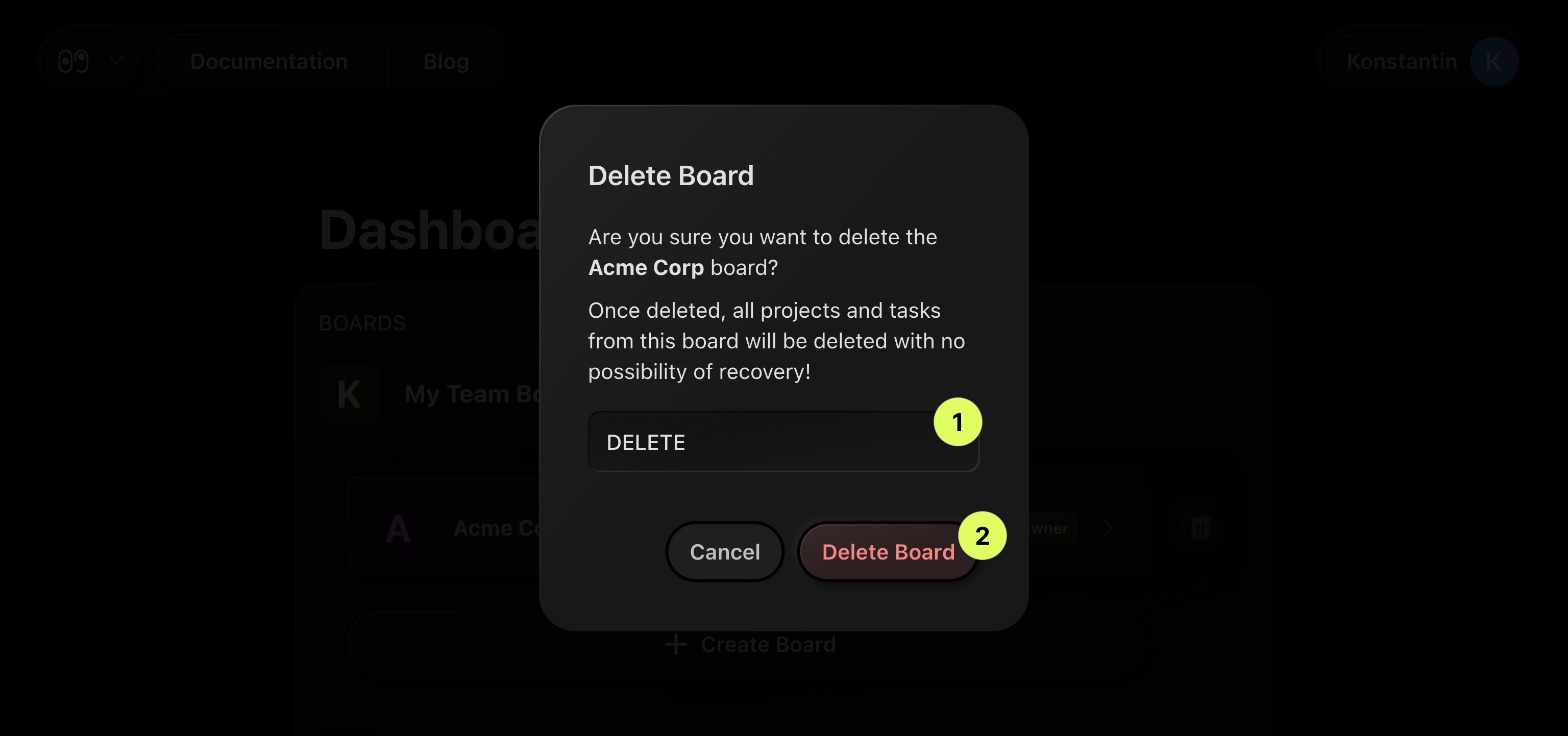 1. Confirm Deletion: Type "DELETE" in the text box.