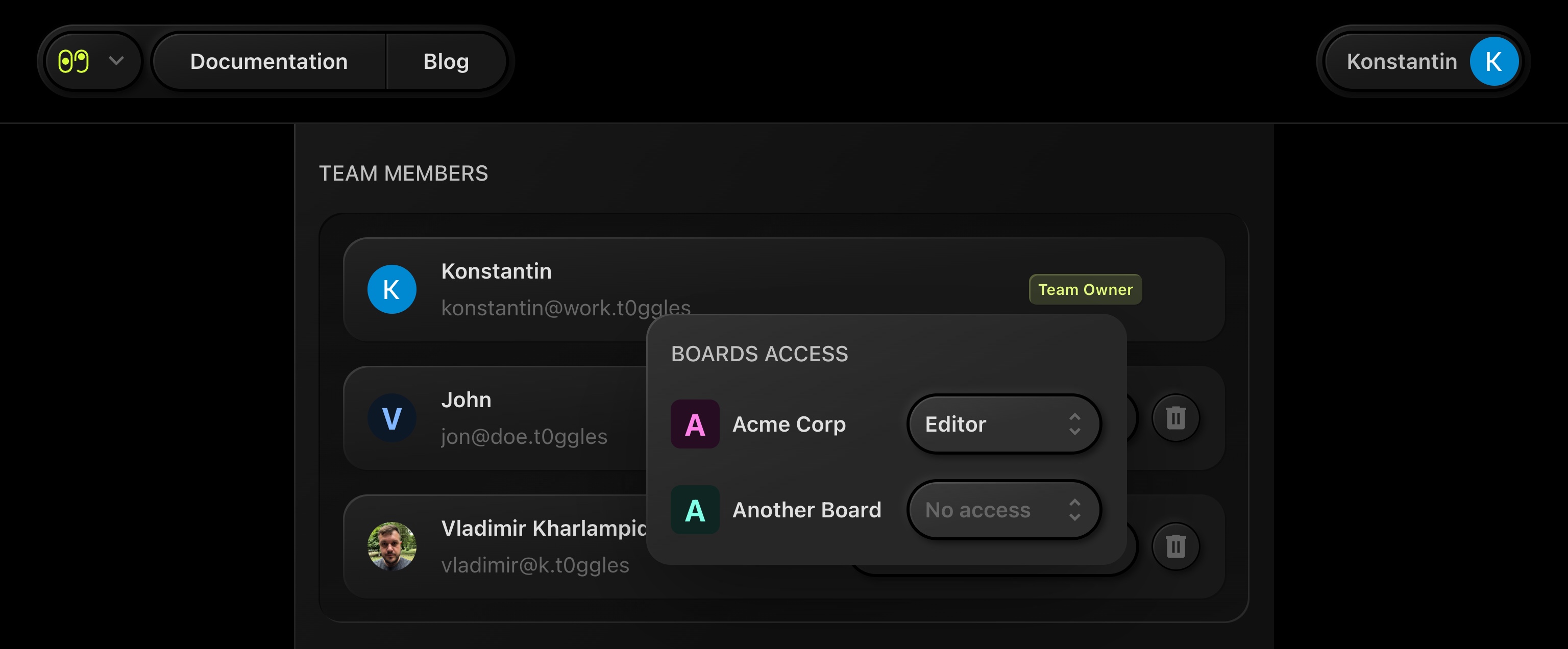 You can also manage access to boards and adjust roles as needed in your "Team Members" list:
