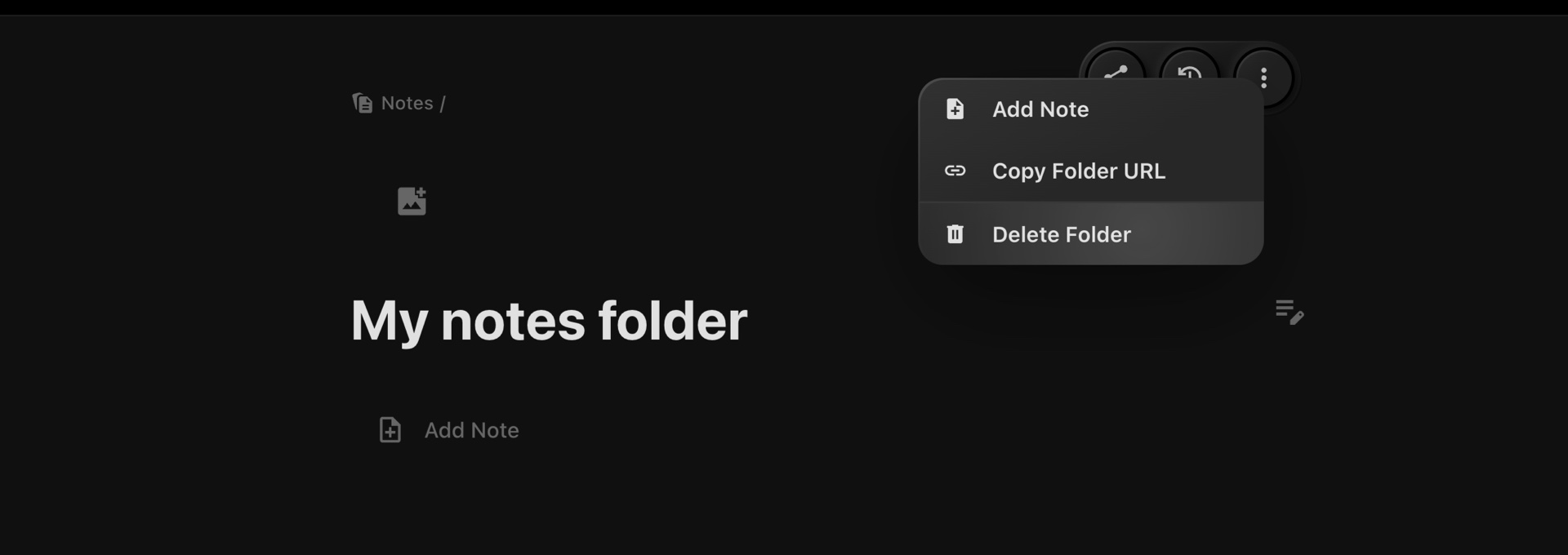 On the folder details page, click the three-dot menu located in the top-right corner.