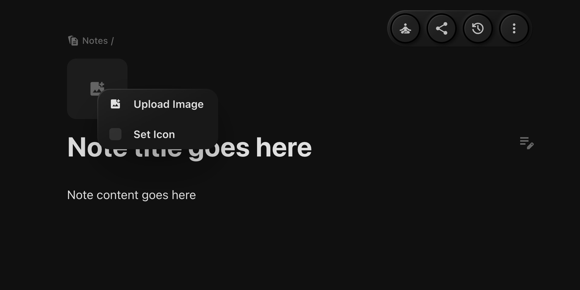 Click on the image or icon placeholder located above the note title.