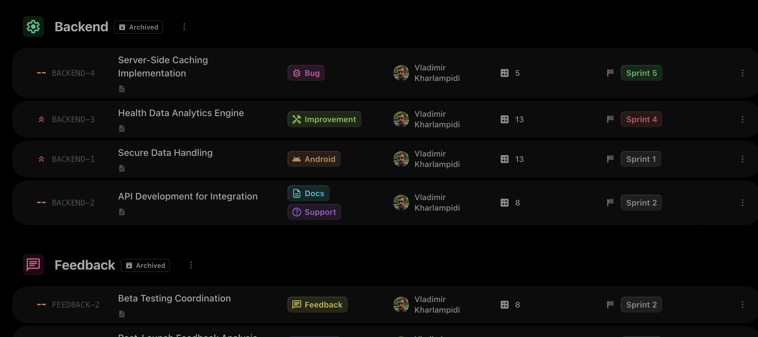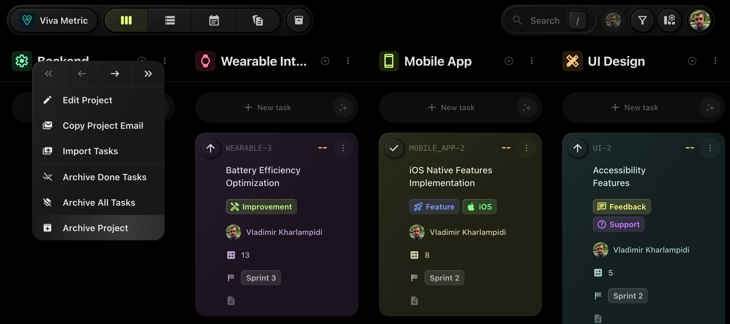 Once archived, the project and all its tasks will be labeled with an "Archived" tag next to the project name. You can find the archived projects in the Archive section.