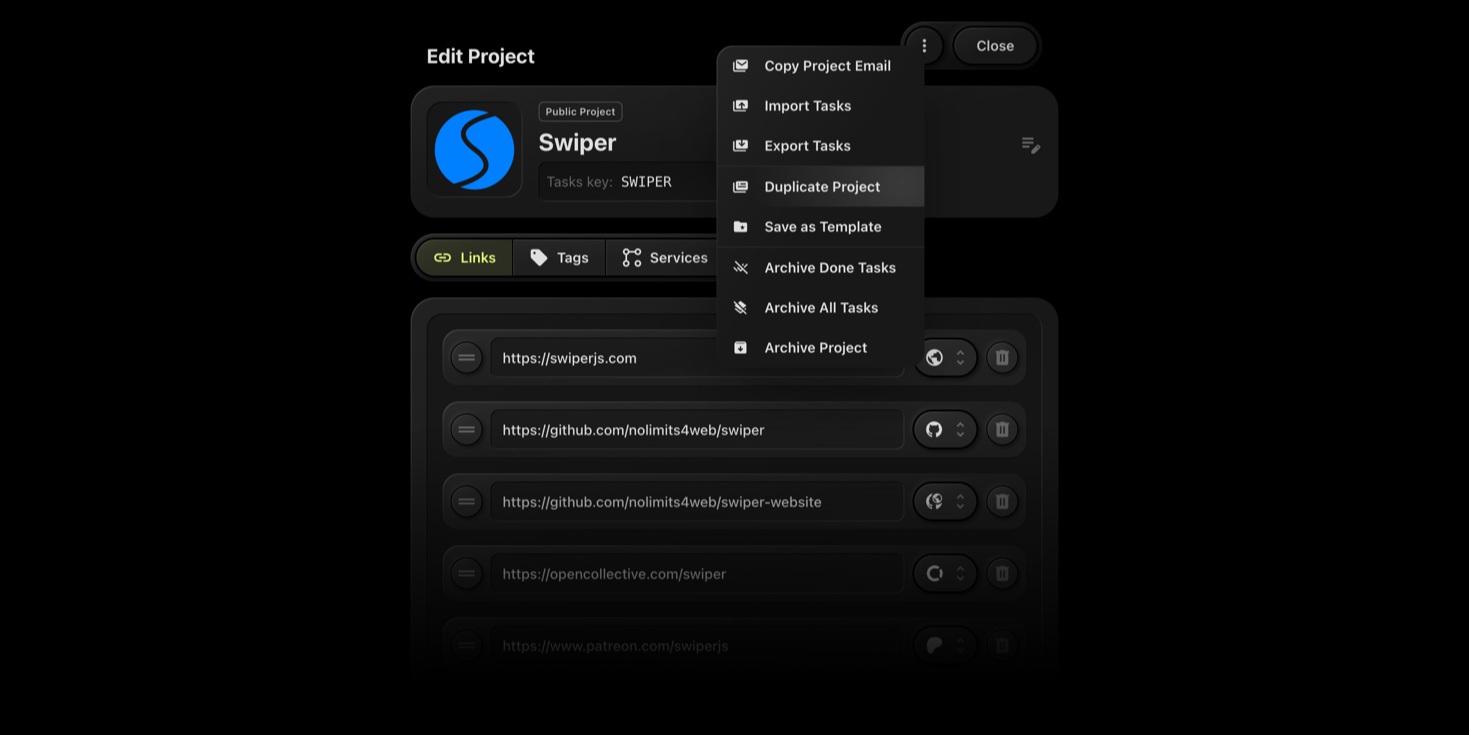 The Duplicate Project feature in t0ggles allows you to quickly create a new project by copying the properties of an existing one. This functionality is ideal for maintaining consistency across similar projects and streamlining your workflow.