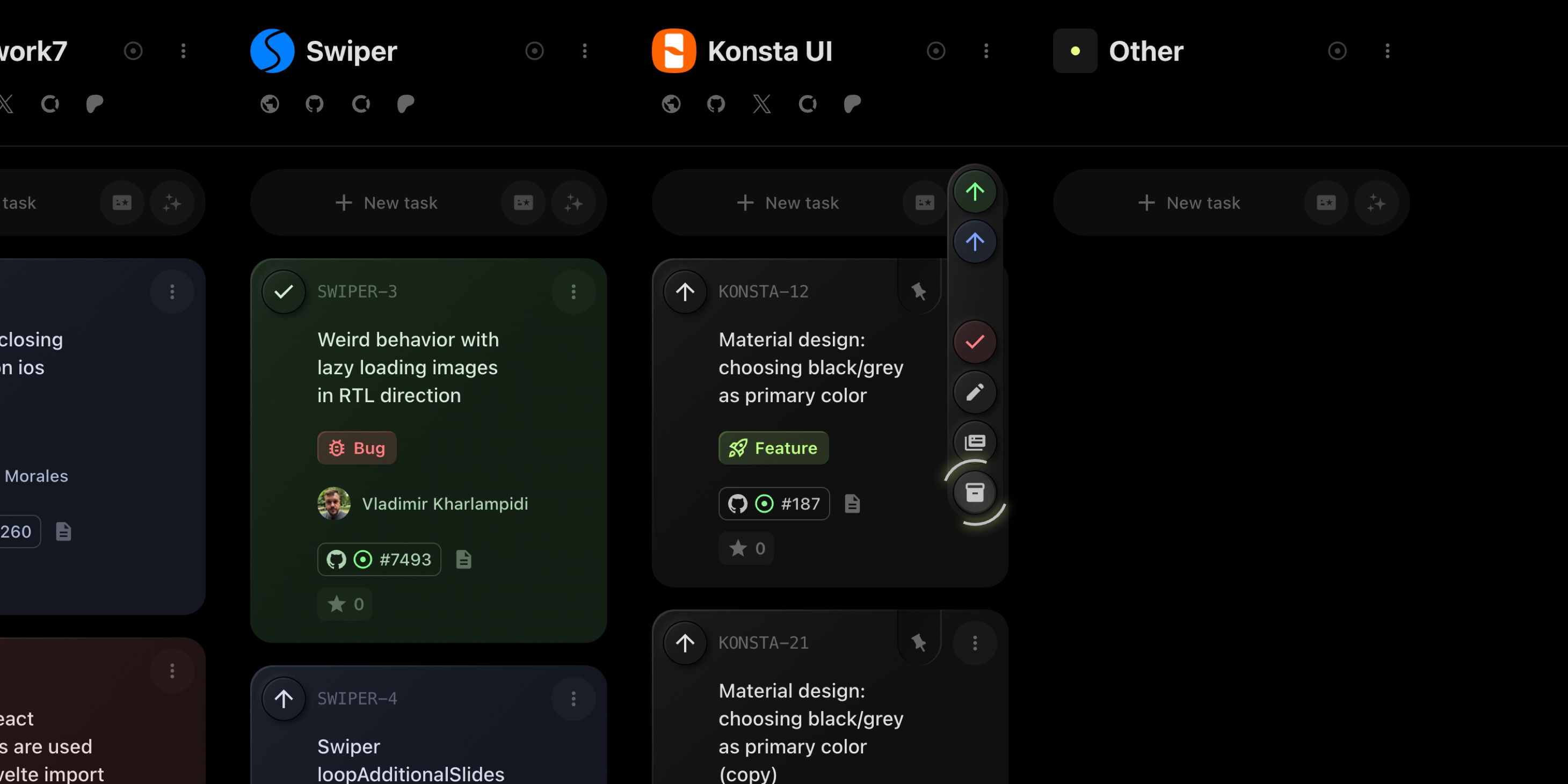 If quick actions are enabled on task cards: