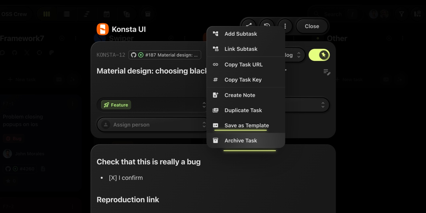 There are two convenient ways to archive a task in t0ggles: