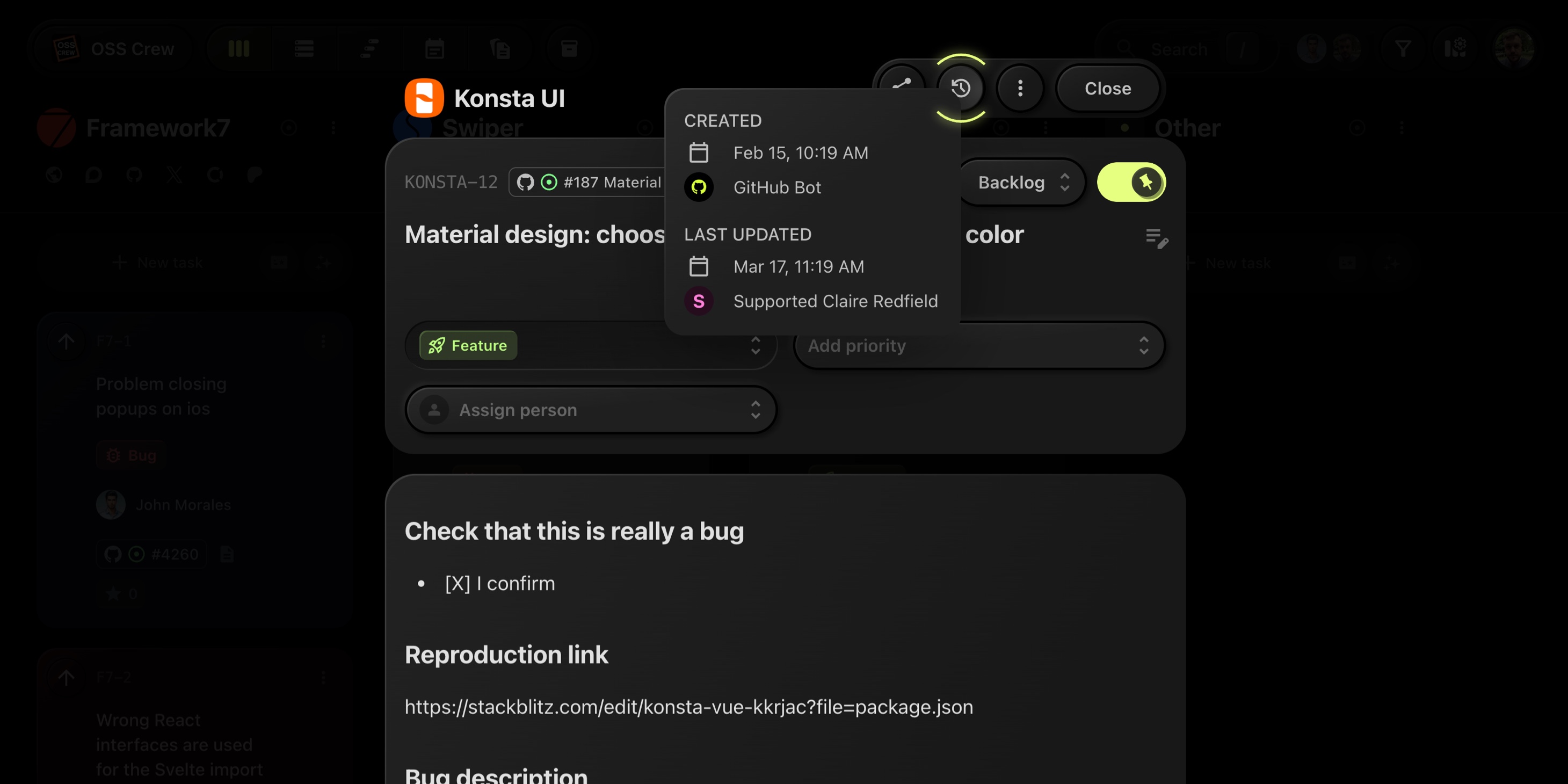 The Task Updates History feature in t0ggles allows you to easily track recent actions and updates made to tasks. This ensures transparency and provides quick insights into the task lifecycle and changes.